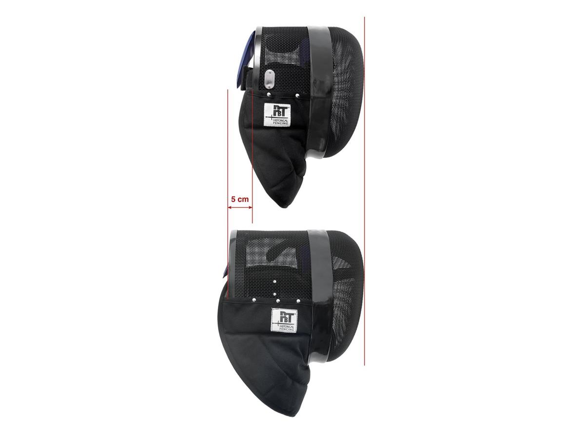 Mask with 1600N bib and over 1000N mesh resistance. Extended mesh at the back and extra steel reinforcement at the forehead inside.